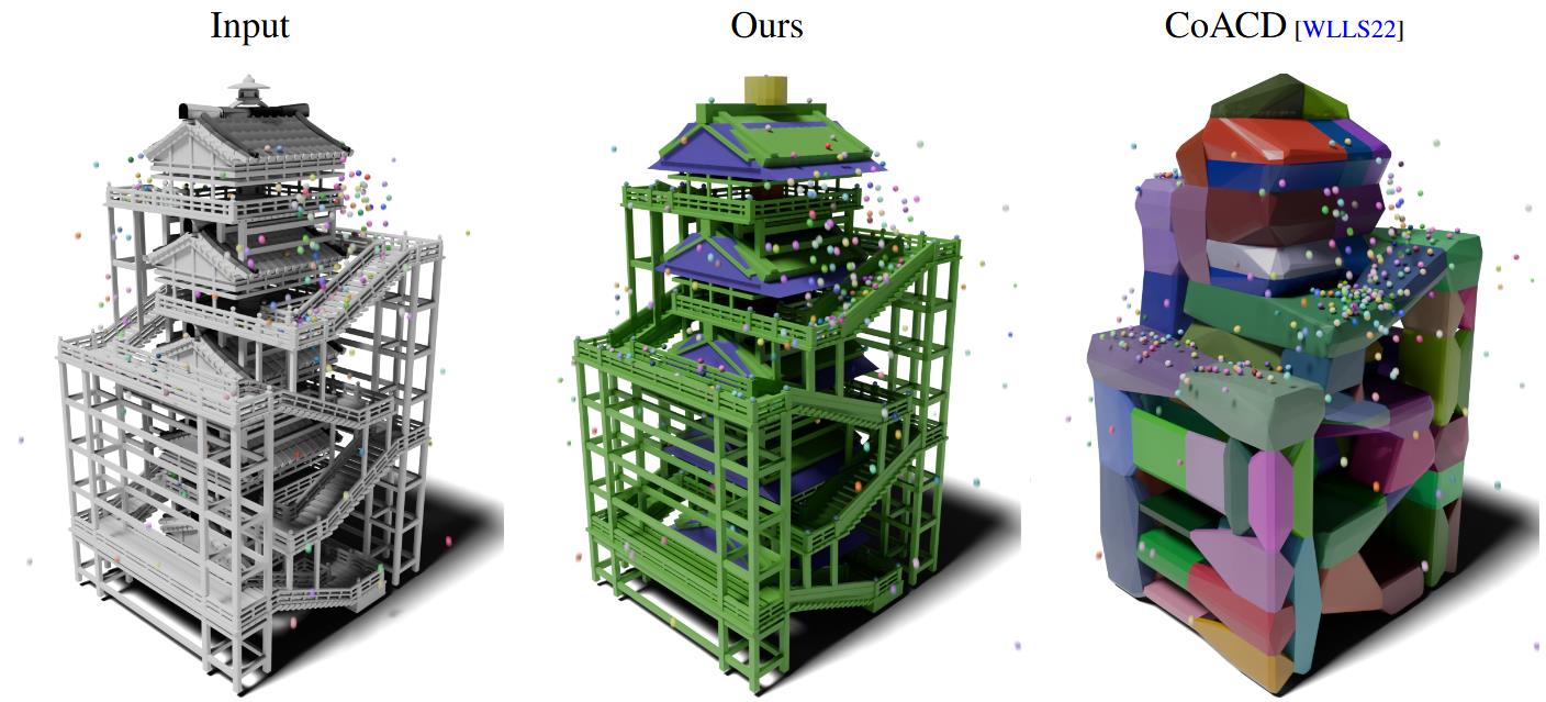 RL-ACD: Reinforcement Learning-based Approximate Convex Decomposition Yuzhe Luo, Zherong Pan, Kui Wu, Xingyi Du, Yun Zeng, Xiangjun Tang, Yiqian Wu, Xiaogang Jin, ACM Transactions on Graphics (Proc. of Siggraph Asia 2025), 2025 [Paper] |